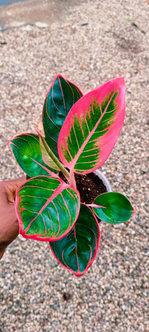 A striking cultivar with dark green leaves with pink red veining bleeding out into the leaf margin. Mature plants prefer dryer soil as overwatering can easily cause root rot. Starter plants will need to mature before you see the striking red veins.