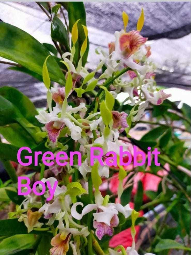 Dendrobium Green Rabbit Boy is a charming orchid variety, named for its delightful resemblance to a playful rabbit amidst its green-hued petals. This orchid cultivar brings a whimsical touch to any indoor garden or floral display. Thriving in bright, indirect sunlight and moderate humidity, Dendrobium Green Rabbit Boy is a resilient and low-maintenance plant suitable for both experienced orchid enthusiasts and beginners. Embrace the unique beauty of Dendrobium Green Rabbit Boy and infuse your space with its enchanting presence and natural charm.