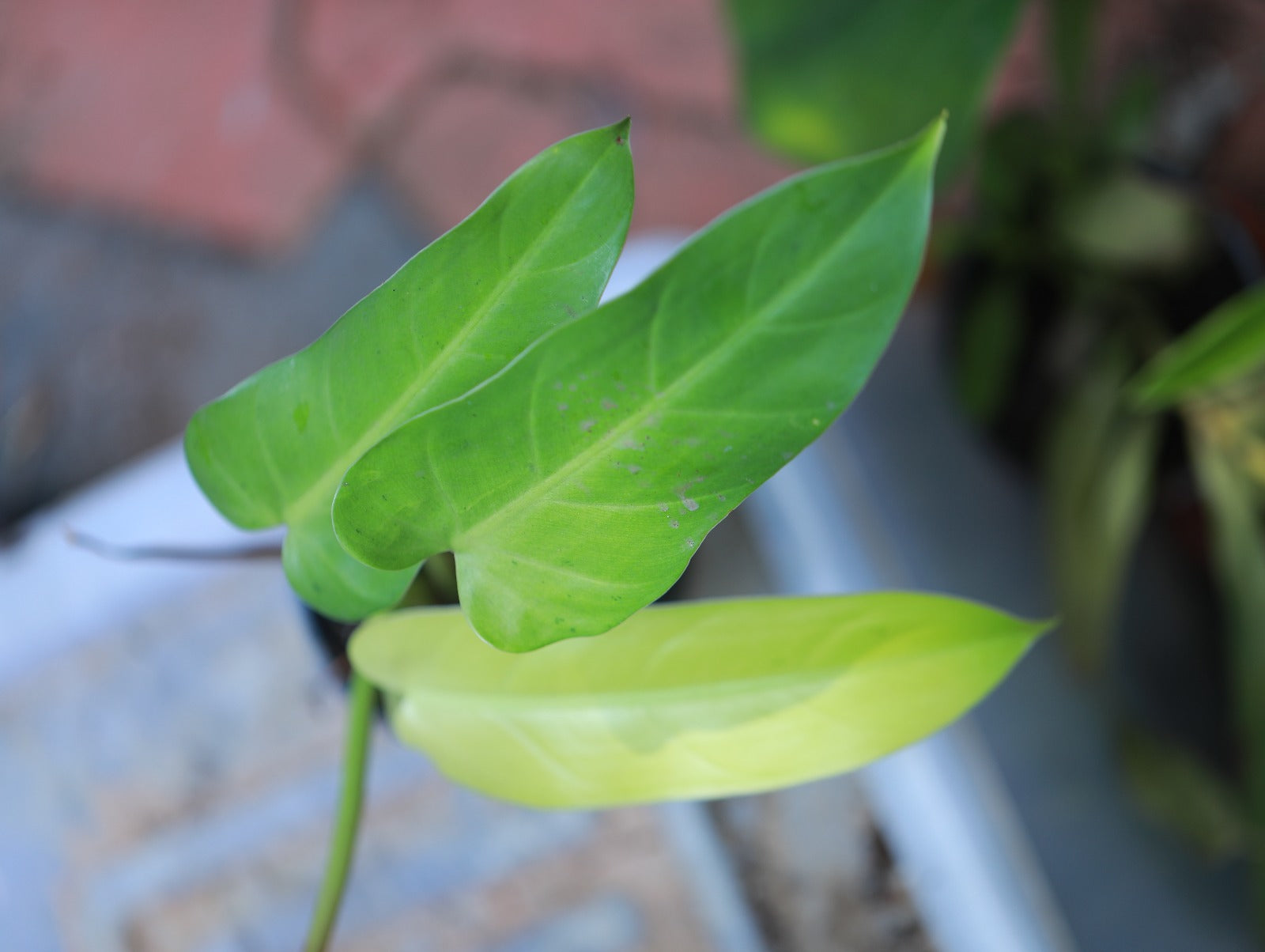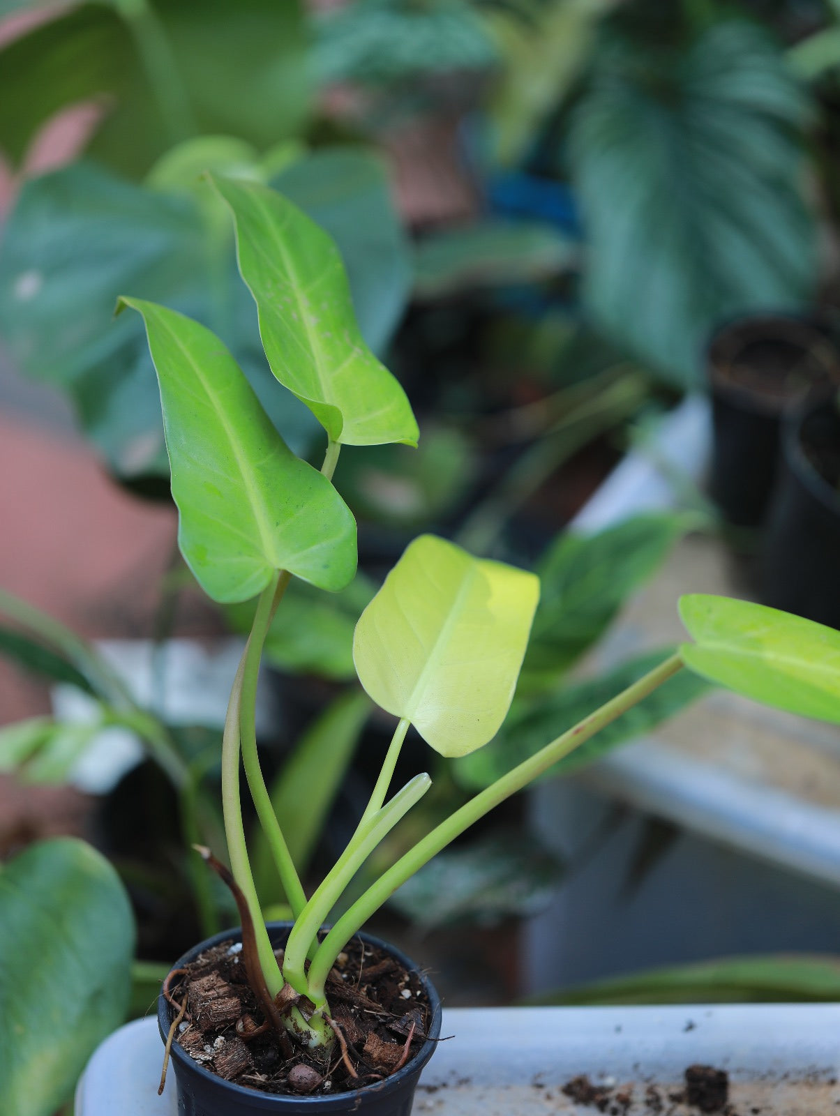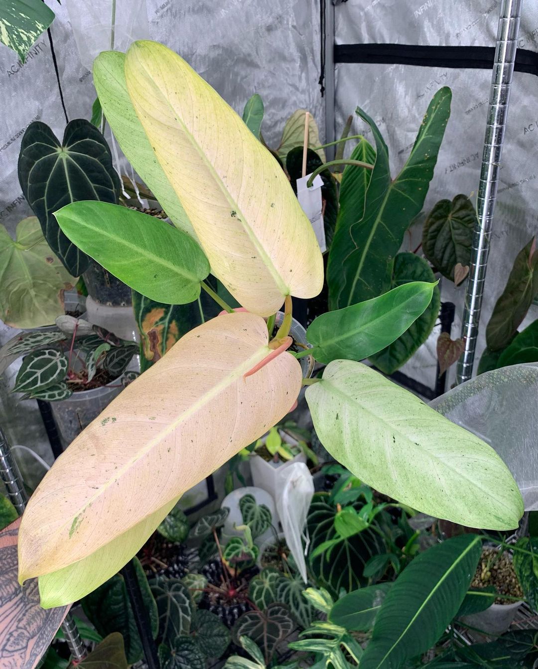 Philodendron Whipple Way is a rare, tropical vine that is a sport Philodendron Domesticum. It has long leaves that grow from a thick central stem. Leaves often boast different shades of green and white striations